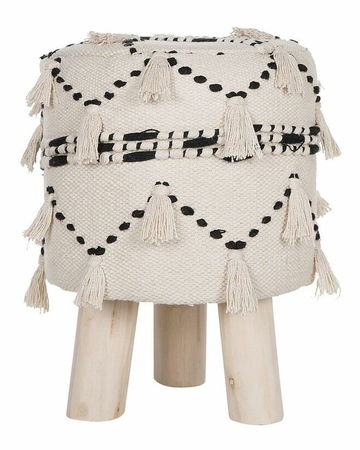 Tato taburetka v boho stylu je doplňkem, který oživí každý interiér a každou místnost – od ložnice přes obývací pokoj až po předsíň. Kulaté sedátko je čalouněno kvalitní bavlněnou látkou a stojí na tlustých nohách z eukalyptového dřeva. Nádherné, ručně vyrobené detaily, jako jsou třásně a ozdobné prošívání, dělají z této taburetky ideální doplněk do interiéru v eklektickém stylu.