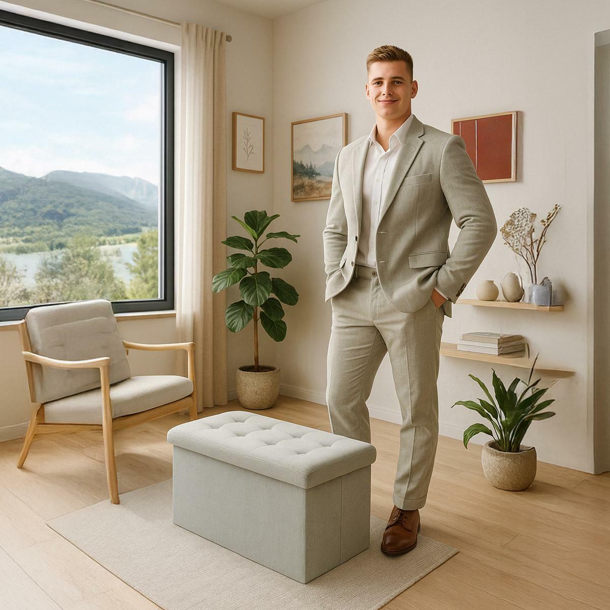 Elegantní taburet v krémové barvě spojuje moderní design s praktickým využitím. Díky skládací konstrukci je ideální volbou do menších interiérů, kde oceníte každý volný centimetr. Textilní manšestrový potah působí příjemně na dotek a snadno zapadne do industriálně laděného obývacího pokoje. Skrytý úložný prostor nabízí inteligentní řešení pro uložení dek, polštářů nebo dětských hraček. Tento víceúčelový kus nábytku přináší pohodlí, styl a funkčnost v jednom.