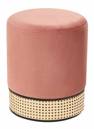 Dodejte svému interiéru glamour atmosféru pomocí tohoto elegantního sametového taburetu. Jeho kulatý tvar a čalouněný povrch poskytují pohodlné a příjemné místo k sezení. Prstenec z ratanového výpletu ve spodní části dodává kousku přírodní akcent a plynule spojuje moderní design s nádechem boho stylu. Tento taburet je všestranným a elegantním doplňkem, který krásně vynikne v obývacím pokoji, ložnici či předsíni.