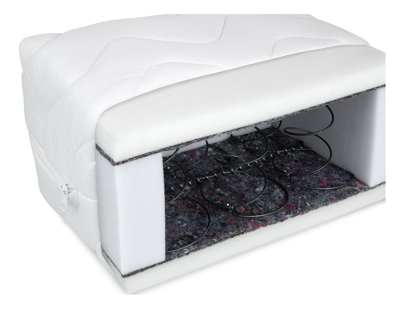 Pružinová matrace je ideální volbou pro ty, kteří hledají pohodlí a styl. Pružinová matrace Piano Pružiny v matraci slouží k další oporě těla. V těchto typech matrací se používají boneloové pružiny. Vrchní vrstva potažená polyuretanovou pěnou poskytuje pohodlí a chrání proti oděru pružinami. Pružinová matrace znamená lepší větrání a termoregulaci, protože její střed není vyplněn pěnou, která by mohla zadržovat teplo. Střední tvrdost matrace je zárukou, že optimálně ovlivňuje vaše tělo během spánku, aniž byste se propadávali během spánku, případně Vás matrace tlačila. Pro koho je matrace Piano vhodná : pro starší děti a dospívající pro alergiky pro lidi, kteří spí sami Rozměry : Rozměr 70x200 : šířka: 70cm, délka: 200cm Rozměr 80x200 : šířka: 80cm, délka: 200cm Rozměr 90x20 120x200 : šířka: 120 cm, délka: 200 cm Rozměr 140x200 : šířka: 140 cm, délka: 200 cm Rozměr 160x200 : šířka: 160 cm, délka: 200 cm Rozměr 180x200 : šířka: 0 17 cm Provedení: výplň: 2 cm silná polyuretanová pěna na obou stranách, bonellové pružiny, pratelný potah léto/zima, doporučuje se matraci otáčet každé 2-3 měsíce, doporučuje se používat matraci na laťkovém roštu, oboustranný, potah je vyroben ze 100% polyesteru, Záruka: