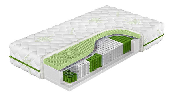 vložka vyrobená z kapsových pružin, 7 zón, mají mnoho podpěrných bodů, což umožňuje udržovat přirozené křivky těla během spánku, čemu funguje nezávisle na ostatních