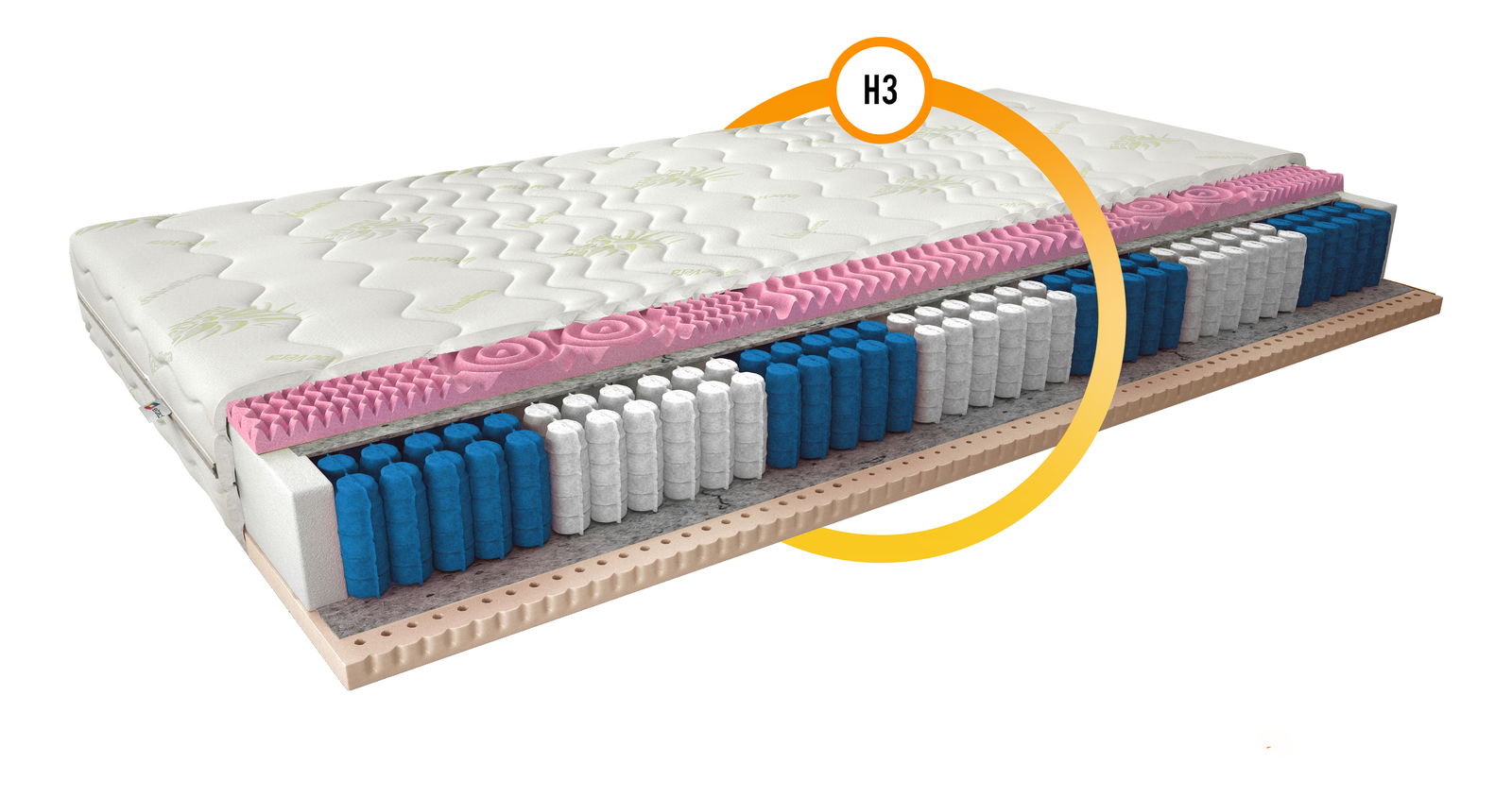 Oboustranná multitaštičková matrace AURORA s technologií maximálního pohodlí má tři opěrné zóny - krční, hrudní a bederní. Díky dvojnásobnému počtu taštiček na 1 m² (až 500 taštiček) poskytuje matrace AURORA ještě vyšší komfort a lepší podporu páteře. Vrchní část je vyrobena z pružné HR pěny, která se vyzančuje výjimečně dobrou pružností a pevností. Spodní část matrace je navíc opatřena 2 cm širokou latexovou vrstvou. Úplné jádro matrace tvoří taštičky obalené dvěma vrstvami plsti. Matrace AURORA je dodávána se snímatelným hypoalergenním povlakem na zip a úpravou Aloe vera, který lze vyprat na 40°.