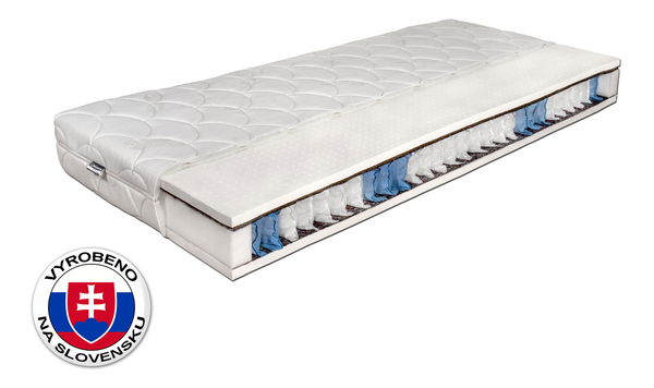Excelentní, 20 cm vysoká anatomická matrace se 7 - zónovým taštičkovým jádrem v kombinaci s perforovanými deskami latexu a přírodním kokosovým vláknem. Taštičkové jádro dokonale kopíruje tvar lidského těla, je složeno z malých samostatných pružinek ve tvaru včelího plastu a navíc v 7 zónách tvrdosti což zvyšuje ortopedický efekt, dokonalé spojení výjimečných materiálů, vynikající elastické vlastnosti latexu zajišťují dlouhou tvarovou stálost matrace. Obsahuje vynikající provzdušnění jádra přes speciální odvětrávací systém, čímž zároveň nedochází k přehřátí organismu. Vysoce ortopedická a antialergická funkčnost vyhoví nejnáročnějším uživatelům.
