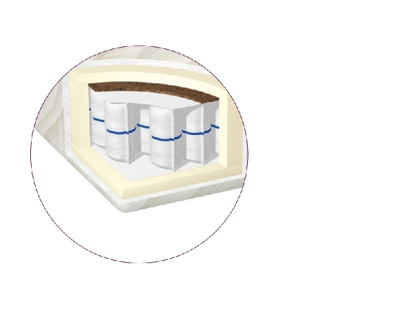 Oboustranná pružinová (taštičková) 7-zónová matrace, která se vyznačuje vysokou bodovou elasticitou což zabezpečuje stabilní podporu chrbtice a tím dobrý a hluboký spánek. Pro zvýšení tvrdosti má matrace na jedné straně kokosovou vrstvu což je vhodné zejména pro lidi s vyšší hmotností.