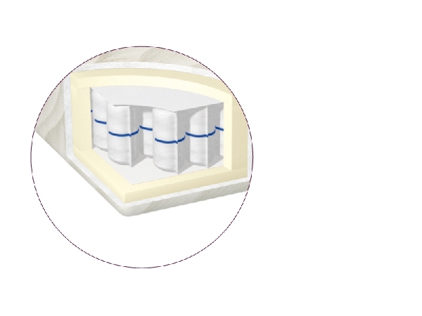Pružinová taštičková matrace se sedmi zónami tvrdosti. Vyznačuje se vysokou bodovou elasticitou co poskytuje páteři dostatečnou oporu a tím zabezpečuje kvalitní spánek.