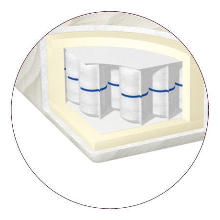 Pružinová taštičková matrace se sedmi zónami tvrdosti. Vyznačuje se vysokou bodovou elasticitou co poskytuje páteři dostatečnou oporu a tím zabezpečuje kvalitní spánek.