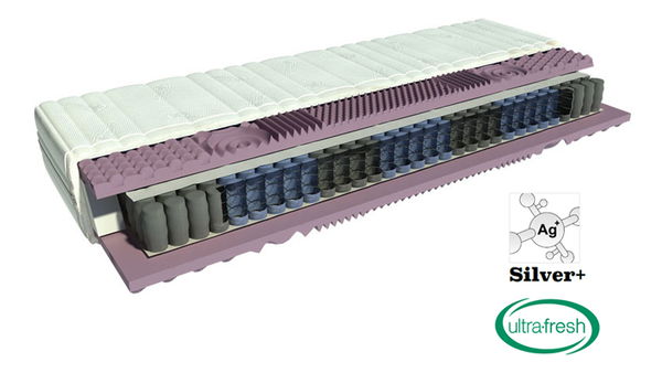 Speciální potah Silver + s ionty stříbra je antistatický, antibakteriální a protiplísňový. Potah minimalizuje nepříjemné pachy, zabraňuje růstu bakterií, plísní a hub, je šetrný k životnímu prostředí a zaručuje dlouhodobý komfort.