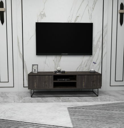 TV stolek/skříňka Esca 3 je praktickým a stylovým doplňkem pro váš obývací prostor. S výškou 50 cm, šířkou 140 cm a hloubkou 40 cm poskytuje dostatek místa pro umístění vašeho televizoru a dalších zařízení. Tmavě hnědá a černá barva dodává interiéru moderní vzhled. Vyrobený z kvalitní 100% melaminové desky, stolek/skříňka je odolný vůči poškrábání a snadno se udržuje čistý. S více úložnými prostory a police nabízí dostatek místa pro uspořádání vašich mediálních zařízení a uložení různých předmětů. Esca 3 je ideální volbou pro ty, kteří hledají spojení funkčnosti a stylu pro svůj televizor.