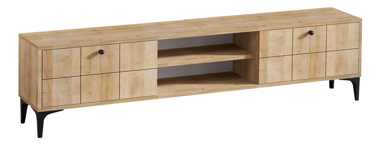 TV stolek/skříňka Hila je ideálním doplňkem pro váš domov. S výškou 55 cm, šířkou 180 cm a hloubkou 31 cm poskytuje dostatek prostoru pro váš televizor a další zařízení. Vyrobený z kvalitní 100% melaminové desky, tento stolek/skříňka je odolný a snadno udržovatelný. Jeho elegantní dubový design přidává do vašeho obývacího pokoje stylový a moderní vzhled. S praktickými úložnými prostory a police je to perfektní řešení pro organizaci vašeho mediálního vybavení. Investujte do kvalitního a praktického TV stolku/skříňky Hila pro skvělý zážitek z televize a esteticky sladěný interiér.