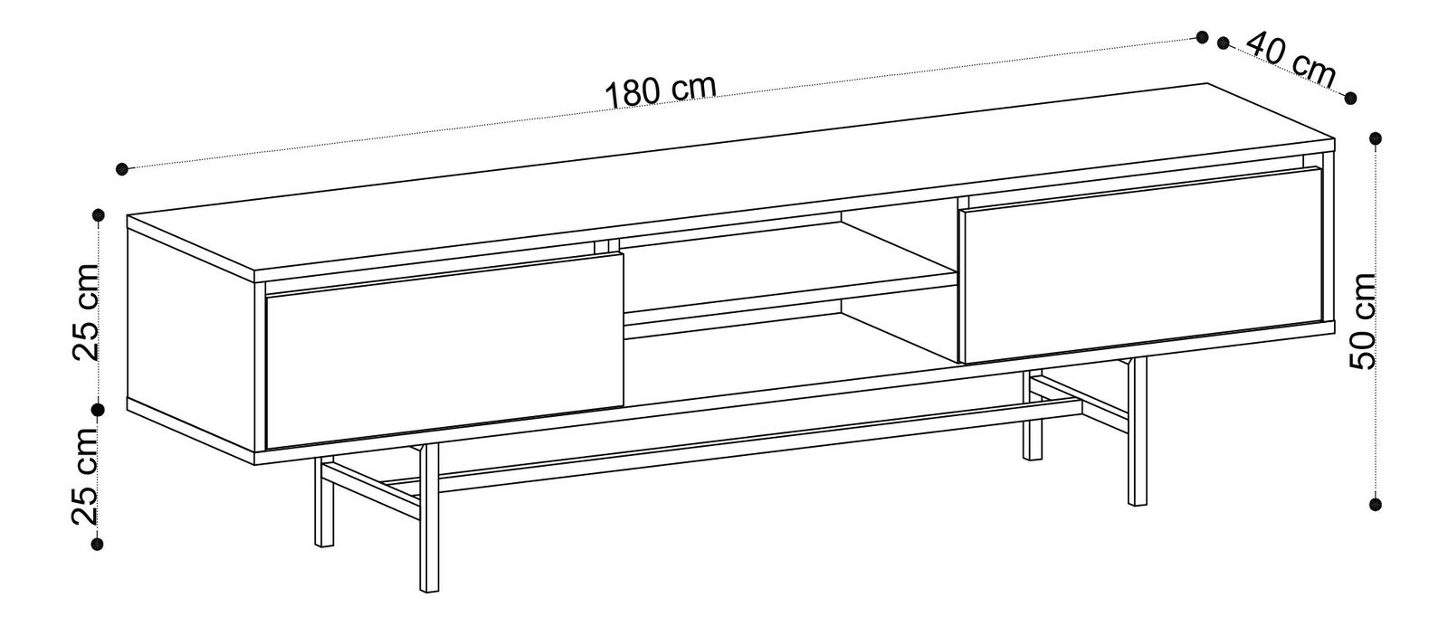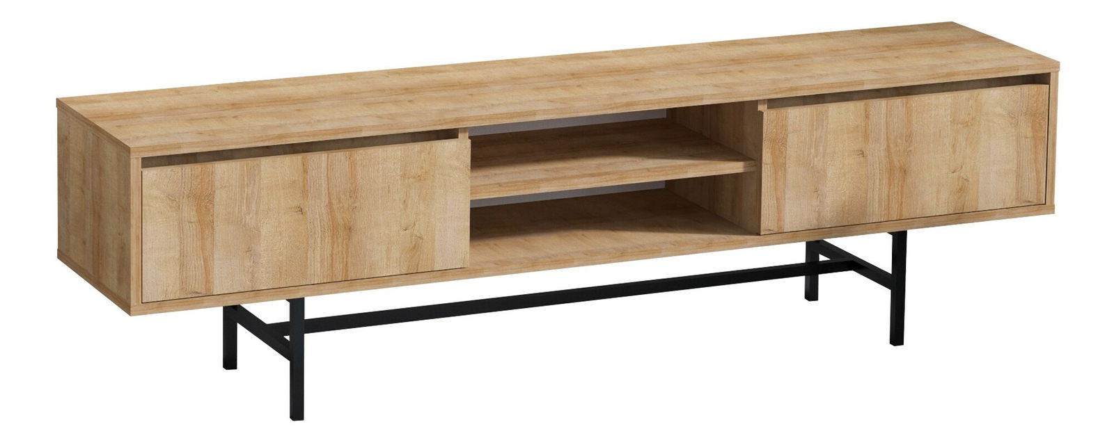 TV stolek/skříňka - Maty je ideálním doplňkem vašeho obývacího prostoru. S výškou 40 cm, šířkou 180 cm a hloubkou 50 cm nabízí dostatek prostoru pro váš televizor, herní konzoli a další elektronická zařízení. Vyrobený z kvalitní 100% melaminové desky, tento stolek/skříňka je pevný a odolný vůči poškrábání a opotřebení. Jeho elegantní design ve stylu Dub+Černá přinese do vašeho interiéru moderní a stylovou atmosféru. TV stolek/skříňka - Maty je praktickým řešením pro uspořádání vašeho televizního stolku, s dostatkem úložného prostoru pro vaše oblíbené filmy, knihy a další věci.
