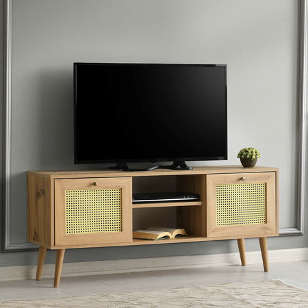 TV stolek/skříňka - Léto je moderní a stylový kus nábytku, který dokonale doplní váš obývací prostor. S výškou 60 cm, šířkou 140 cm a hloubkou 40 cm poskytuje dostatek místa pro váš televizor a jiná zařízení. Vyrobený z kvalitní 100% melaminové desky, tento stolek/skříňka je odolný a snadno se udržuje. Jeho dubový povrch přidává do vašeho interiéru přírodní a elegantní vzhled. S praktickými úložnými prostory a police nabízí dostatek místa pro uspořádání vašich mediálních zařízení a dalších věcí. TV stolek/skříňka - Léto je ideální řešení pro všechny, kdo hledají spojení funkčnosti a stylu v jednom nábytkovém kousku.