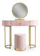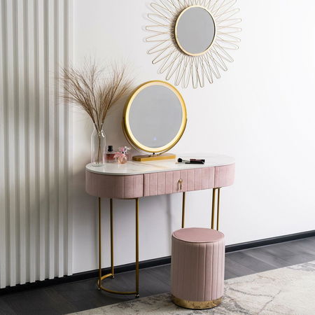 Toaletní stolek Afecto (růžová + zlatá) (s taburetkou a LED zrcadlem)