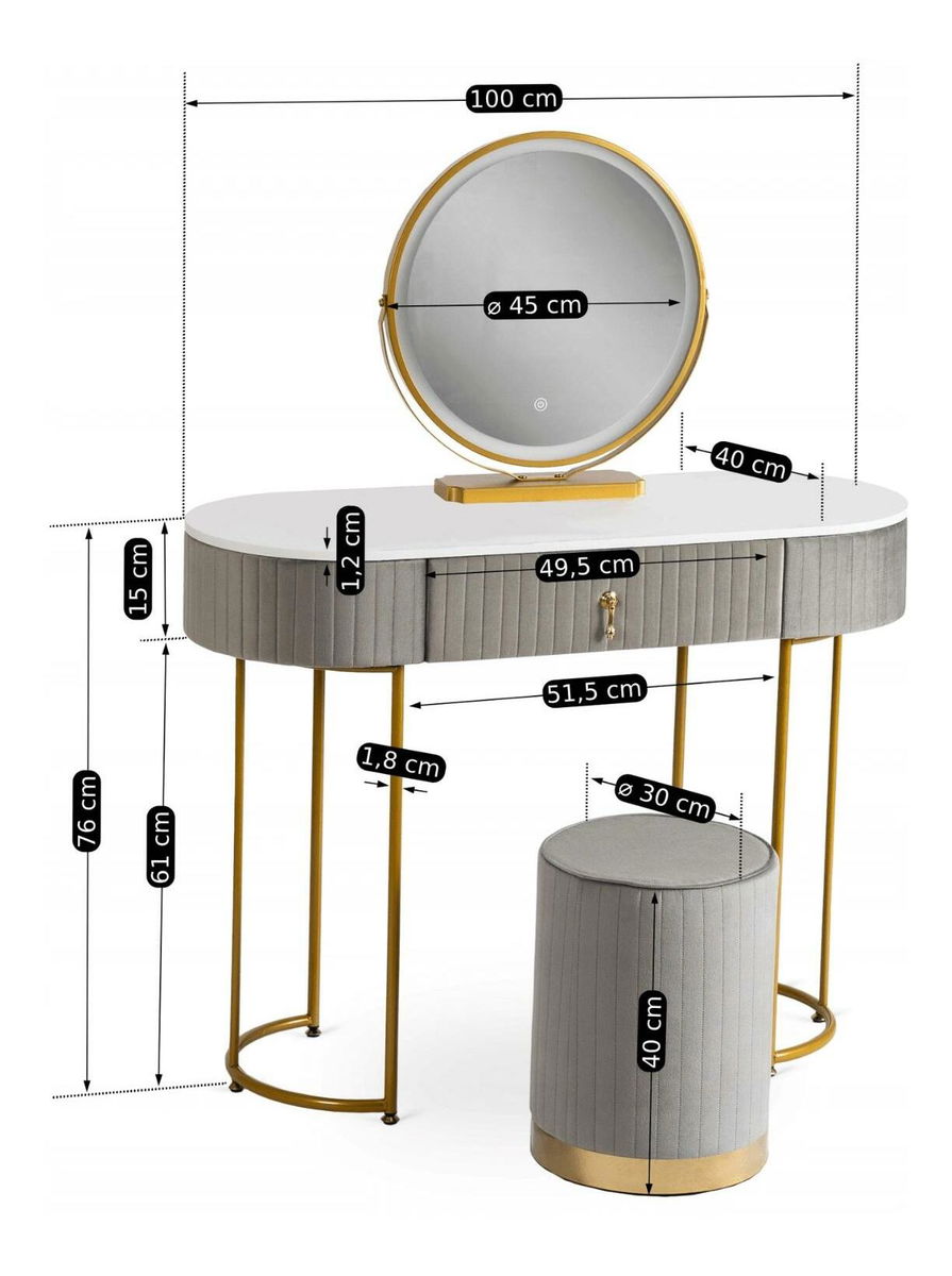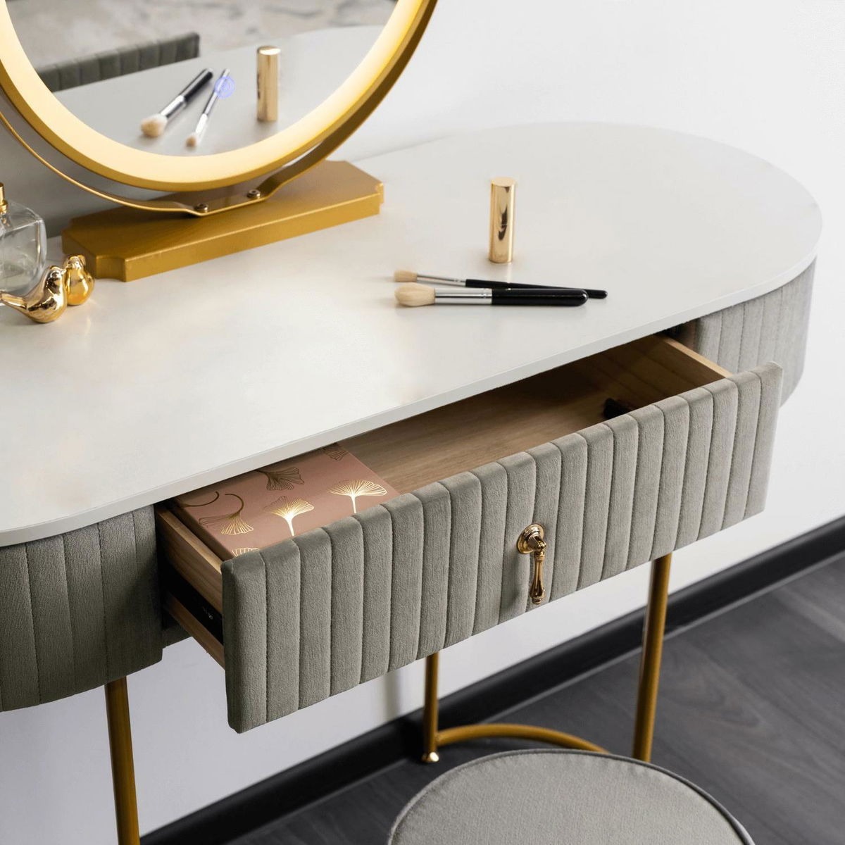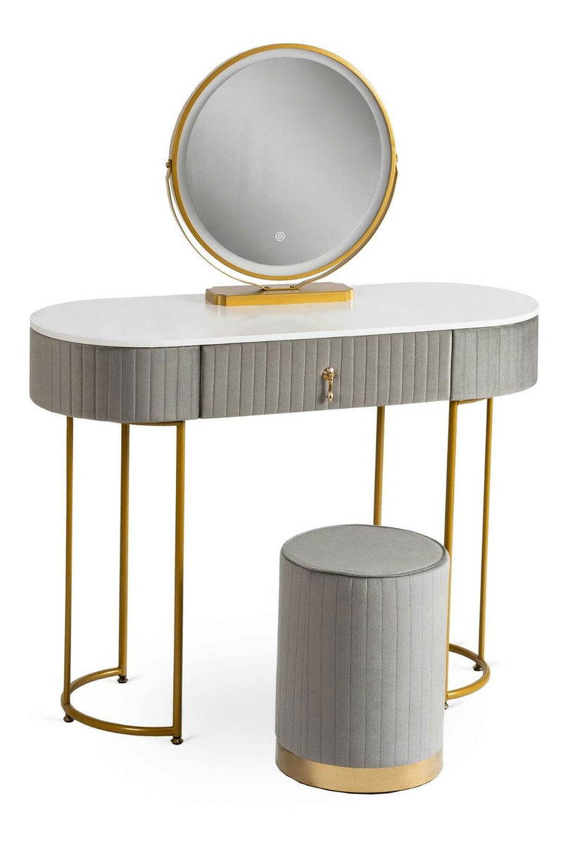 Toaletní stolek Afecto (šedá + zlatá) (s taburetkou a LED zrcadlem)