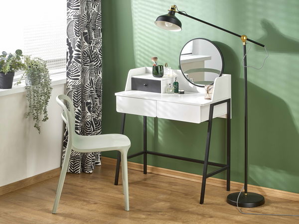 ZobrazitToaletní stolek Ali v bílo-černé barvě o výšce 120 cm a hloubce 42 cm je ideální volbou pro každého, kdo hledá stylový a praktický doplněk do své ložnice nebo koupelny. Stolek je vyroben z kvalitních materiálů, takže zaručuje dlouhou životnost a odolnost vůči poškození. Materiály zahrnují zrcadlo, laminovanou dřevotřísku - melamin a ocel s práškovým nástřikem. Stolek nezahrnuje osvětlení, ale lze jej objednat samostatně v e-shopu. Celkové rozměry balíků jsou uvedeny v poznámkách. Toaletní stolek Ali nabízí dostatek prostoru pro uskladnění kosmetických potřeb a zároveň dodává vašemu interiéru eleganci a sofistikovanost.