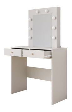 ZobrazitKaždodenní přípravy vám zpříjemní toaletní stolek Arapat se zrcadlem. Byl navržen s ohledem na praktické využití a estetiku, hodí se do moderní ložnice. Hlavní dominantou toaletního stolku je zabudované osvětlení, které poskytuje ideální podmínky pro precizní make-up či precizní úpravu vlasů. Jasné, rovnoměrné světlo eliminuje stíny a poskytuje přirozený efekt bez ohledu na denní dobu. Dvě prostorné zásuvky vám umožní udržovat v pořádku potřebnou kosmetiku, pečující doplňky nebo šperky. Díky tomu máte vše potřebné ke každodenní přípravě vždy po ruce.