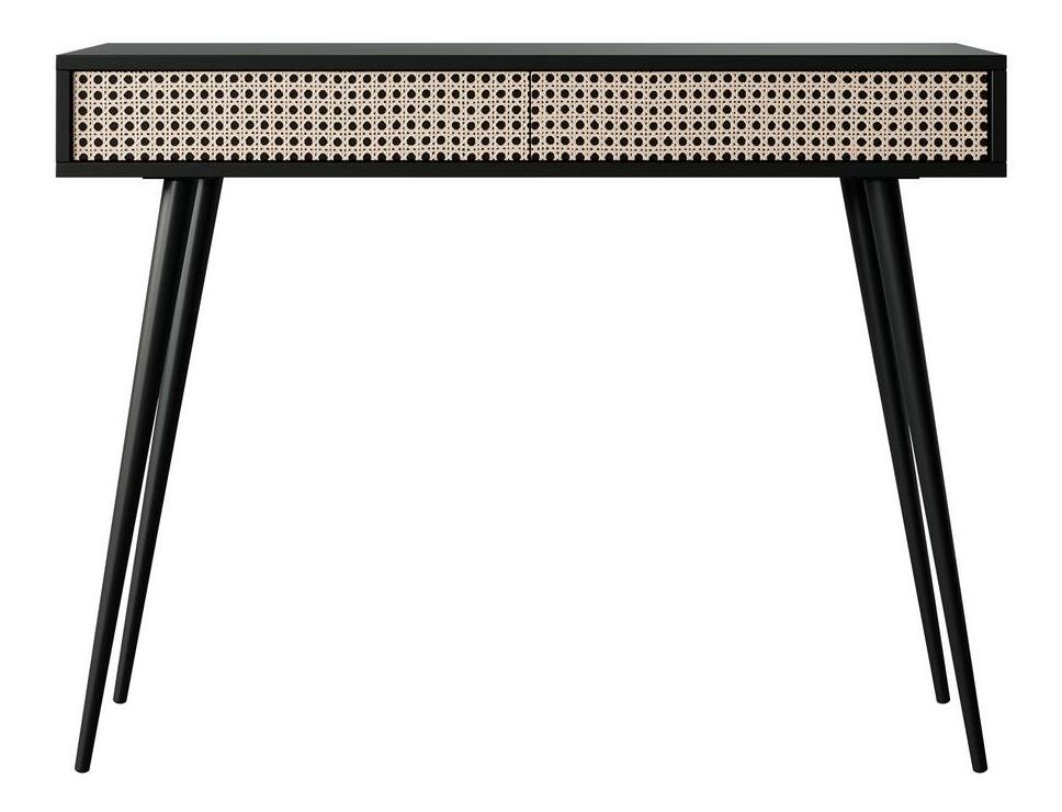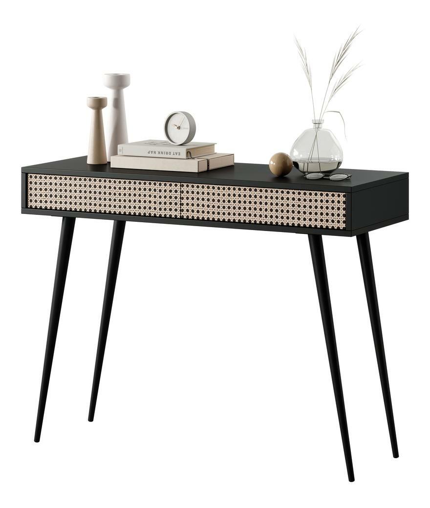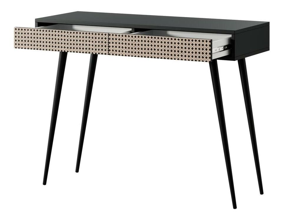 ZobrazitHledáte nábytek, který vám pomůže zařídit jedinečný prostor jako z časopisu o interiérovém designu? S toaletním stolkem rychle a jednoduše změníte svůj obývací pokoj k nepoznání. Toaletní stolek je jedinečný design a funkčnost v jednom! Jednoduchá forma na černých úzkých nožičkách je obohacena o potištěný dekor s módním vídeňským copem vpředu, díky čemuž to celé působí velmi styl. Úspěšně zapadne do interiérů zařízených v moderním, minimalistickém a industriálním stylu, kde se nepochybně stane ozdobou místnosti. Výhodou toaletního stolku jsou dvě zásuvky, které vám umožní schovat soukromé věci před zraky hostujících hostů, přičemž prostorná deska bude skvělým místem pro vystavení vázy s květinami nebo stylových doplňků Detaily produktu: korpus vyrobený - lamino dřevotřísková deska, která je odolná vůči vlhkosti a poškrábání, zajišťuje dlouhé používání, přední strana je vyrobena z desky Amadeus 14-57150-001 a korpus je vyroben z desky 0190 PE 18 mm černé barvy, vysoké nohy nábytek odlehčují a usnadňují pro udržení pořádku jsou hrany nábytku zpevněny ABS hranou, nábytek lze složit svépomocí .