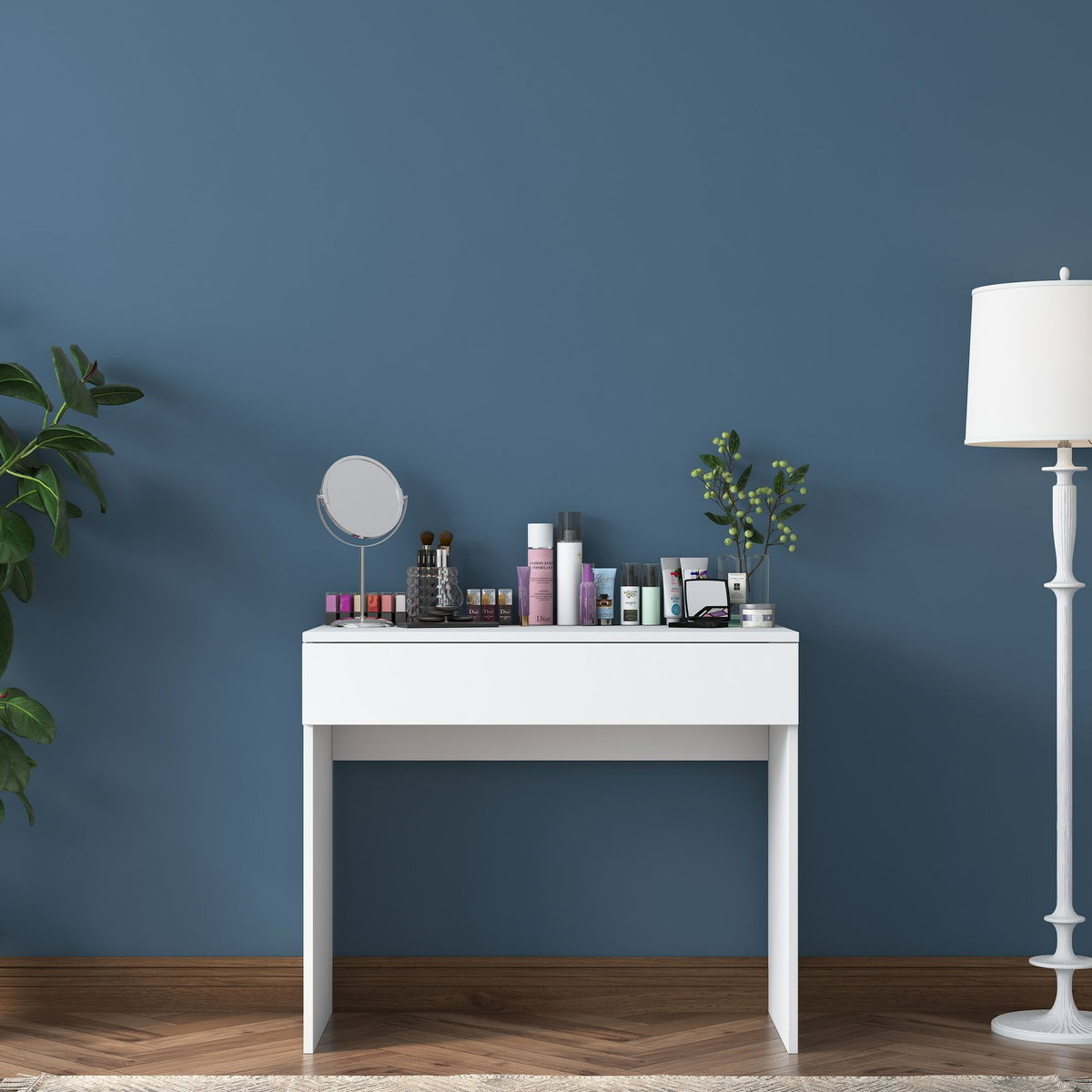 ZobrazitToaletní stolek - Blake 104 (Bílá) je stylový a praktický kousek nábytku, který doplní váš interiér. S výškou 76 cm, šířkou 90 cm a hloubkou 45 cm poskytuje dostatek prostoru pro uspořádání vašich kosmetických potřeb. jakémukoli stylu interiéru. Toaletní stolek je vyroben z kvalitních materiálů, což zajišťuje jeho trvanlivost a odolnost. Součástí jsou praktické zásuvky a úložný prostor, kde můžete uschovat své věci v pořádku. a funkční řešení.