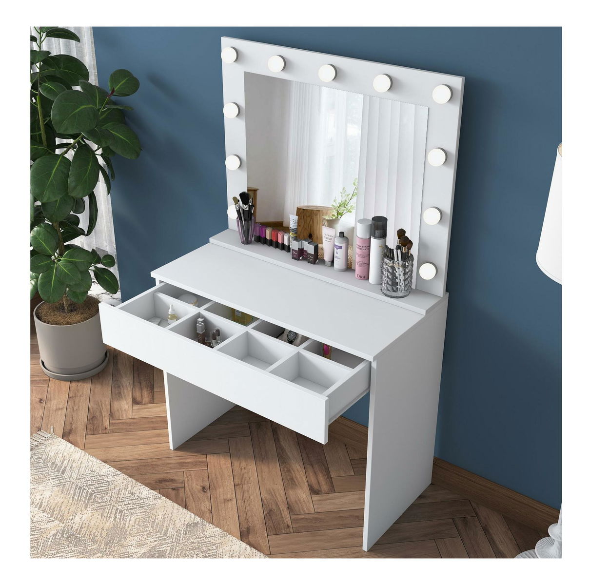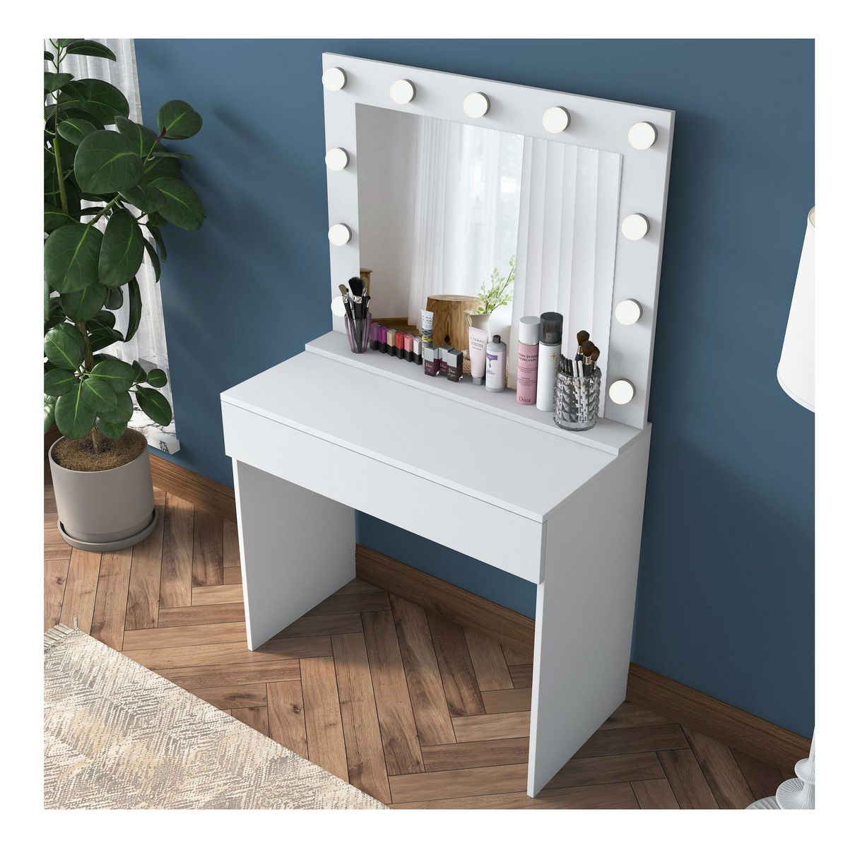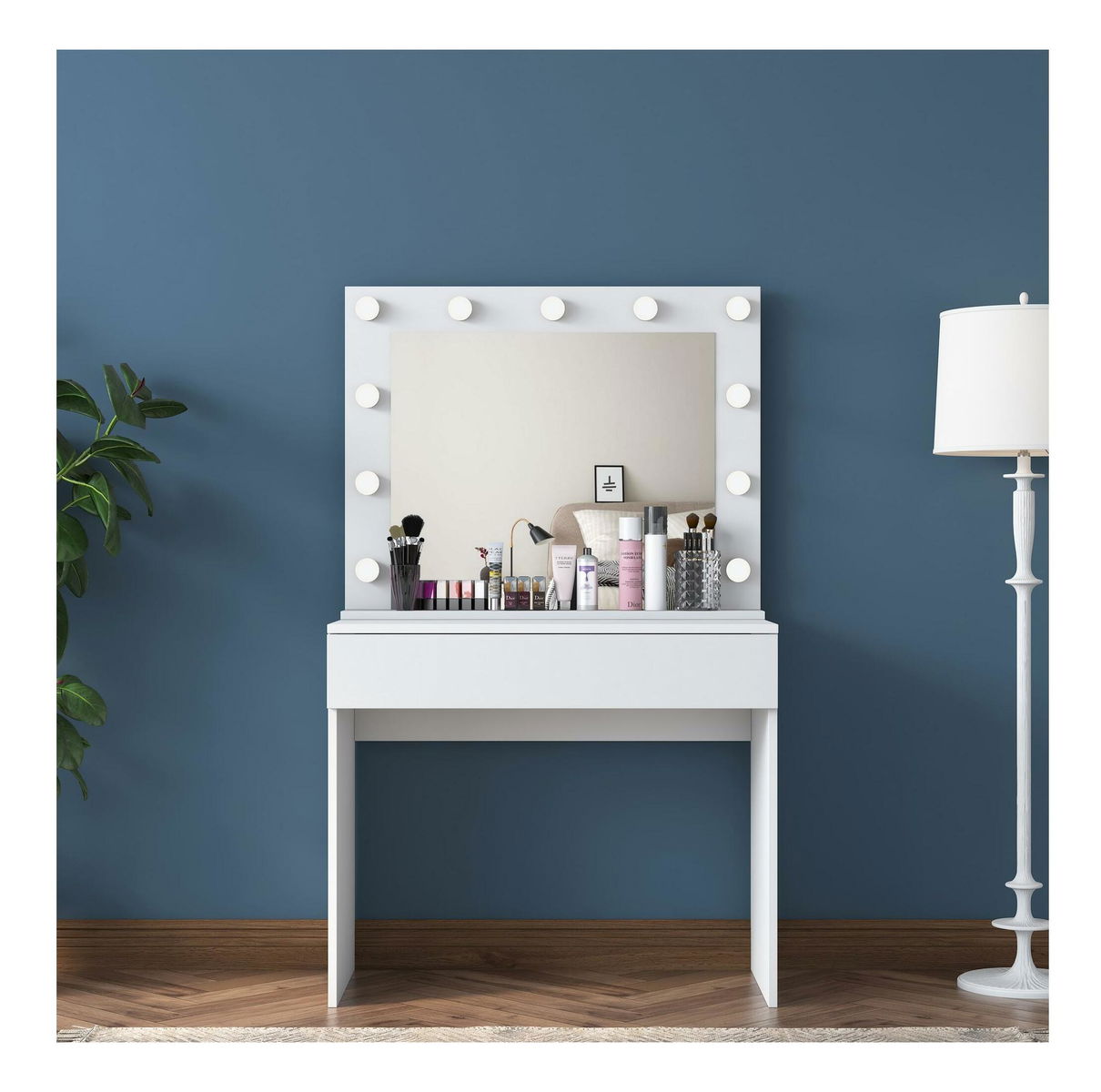 Toaletní stolek Blake 20 (se zrcadlem) (s LED osvětlením) (bílá)
