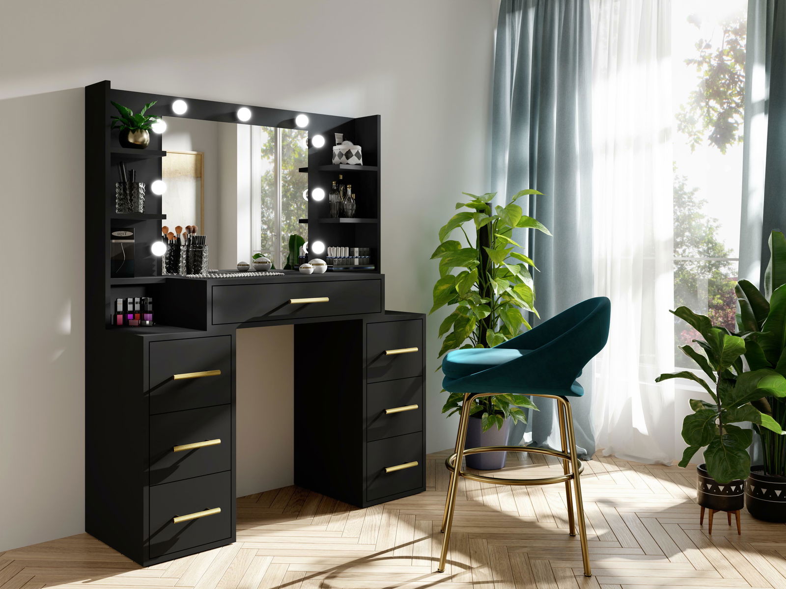 Toaletní stolek Bronetta 1 (černá) (se zrcadlem) (s LED osvětlením)