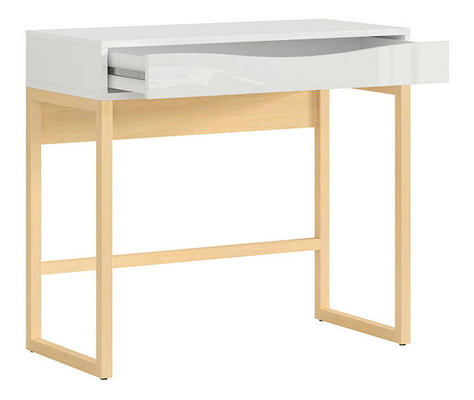 ZobrazitToaletní stolek z modelové řady Pori potěší zejména dámy. Je nejen elegantní, ale i velmi praktický. Stolek obsahuje zásuvku pro uložení kosmetiky a jiných drobností. Zásuvka je na válečkových kolejničkách.