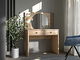 ZobrazitZcela novým kusem nábytku v naší nabídce je malý skromný toaletní stolek, který lze využít také jako psací stůl v počítačové učebně. Přirozená barva Artisan dokonale zapadne do každého interiéru. Takovýto toaletní stolek lze umístit do ložnice vedle postele, abyste si před spaním mohli natřít oblíbený noční krém a ráno se postarali o svůj vzhled. Dvě funkční zásuvky lze rozšířit jako úložný prostor na šperky nebo kosmetiku. Dokonalým doplňkem takového pečovatelského koutku bude pohodlné křeslo nebo malá taburetka, na které se dá sedět.
