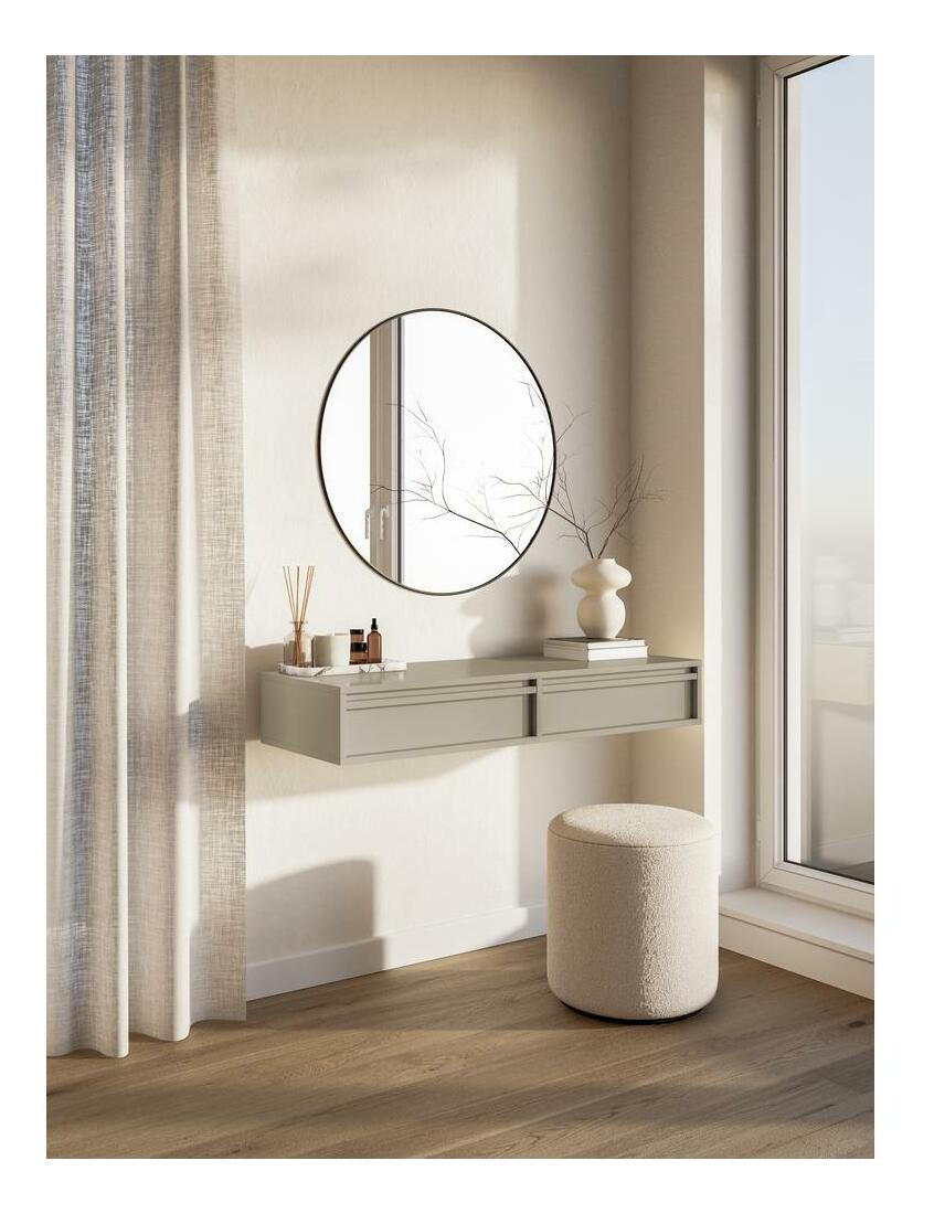 ZobrazitHledáte alternativu k módním lamelám? Oceňujete minimalismus ve svém interiéru? Pokud ano, určitě se vám bude líbit kolekce nábytku Toaletní stolek se jistě hodí do jemných aranžmá a vnese do místnosti útulnou atmosféru. Jeho univerzální a nadčasový tvar je vybaven dvěma praktickými šuplíky, kde si můžete uložit make-up nebo šperky. Stolová deska o šířce 110 cm poskytne dostatek prostoru pro dokonalé nalíčení nebo použití notebooku Detaily produktu: korpus: laminovaná deska 16 mm (U750 ST9 Grey Taupe), hrany chráněné 0,8 cm ABS hranou, která zaručuje zpevnění proti mechanickému poškození, zásuvky. vybaveno systémem push to open, nemají systém tichého zavírání, barva: šedá a béžová.