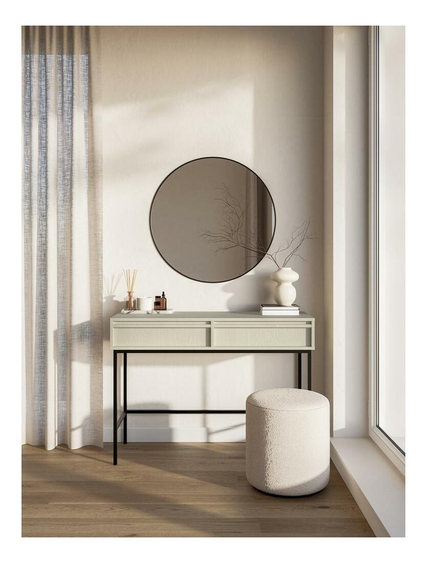 ZobrazitHledáte alternativu k módním lamelám? Oceňujete minimalismus ve svém interiéru? Pokud ano, určitě se vám bude líbit kolekce nábytku Toaletní stolek se jistě hodí do jemných aranžmá a vnese do místnosti útulnou atmosféru. Jeho univerzální a nadčasový tvar je vybaven dvěma praktickými šuplíky, kde si můžete uložit make-up nebo šperky. Stolová deska o šířce 110 cm poskytne dostatek prostoru pro dokonalé nalíčení nebo použití notebooku Detaily produktu: korpus: 16 mm laminovaná deska se strukturou dřeva (U16003 WP Beż Piaskowy), podnož: ocel s práškovým nástřikem, hrany chráněné ABS hranou 0,8. cm, což zaručuje vyztužení proti mechanickému poškození, zásuvky vybavené systémem push to open, nemají systém tichého zavírání, barva: písková béžová.