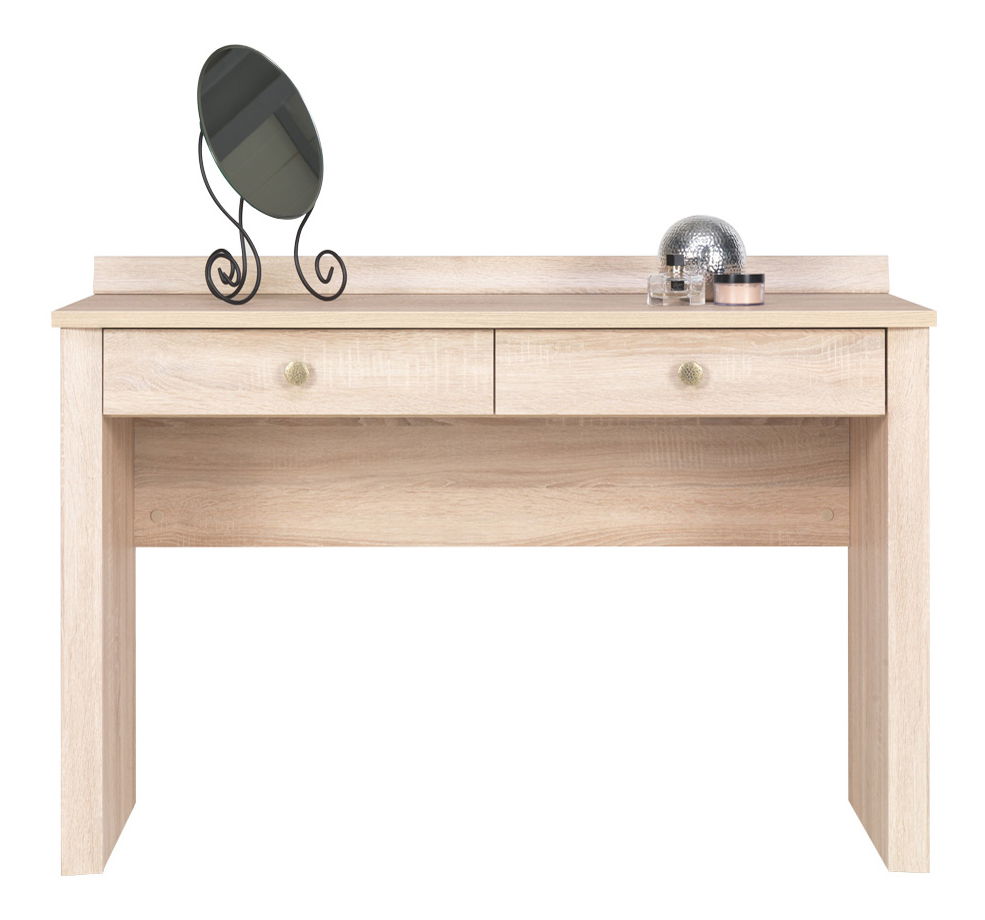 Toaletní stolek Fintona F15 je ideálním doplňkem do každé ložnice nebo koupelny. S výškou 75 cm a hloubkou 50 cm poskytuje dostatek místa pro vaše kosmetické potřeby, parfémy a jiné osobní věci. Jeho moderní design v dub sonoma barvě zaručuje, že se bude hodit do většiny interiérů. Toaletní stolek je vybaven zrcadlem, které vám umožní snadno upravovat vaše vlasy a make-up. Díky kvalitnímu zpracování a použitým materiálům je tento toaletní stolek odolný a dlouho vydrží. Investujte do tohoto skvělého kousku nábytku a užijte si dokonalé ráno každý den!