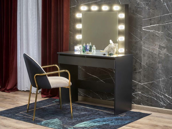 ZobrazitToaletní stolek Hektor (černá) je výšky 140 cm a hloubky 43 cm. Je vyroben z laminované dřevotřísky a má LED světla. Jeho rukojeť je stylová a funkční, díky čemuž se vám bude skvěle držet. Toaletní stolek Hektor má černou barvu, která dodává prostoru elegantní vzhled. Jeho rozměr se hodí pro větší i menší místnosti. Toaletní stolek Hektor je praktický a elegantní nábytek, který bude skvěle doplňovat váš interiér. Rozměry balíku 1 jsou (v.š.h.): ..., rozměry balíku č. 1 2 jsou (v.š.h.): ..., rozměry balíku č. 2 3 jsou (v.š.h.): ..., rozměry balíku č. 3 4 jsou (v.š.h.): ..., rozměry balíku č. 4 5 jsou (v.š.h.): ... Poznámka: Balení neobsahuje montážní prvky.