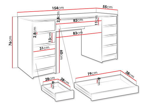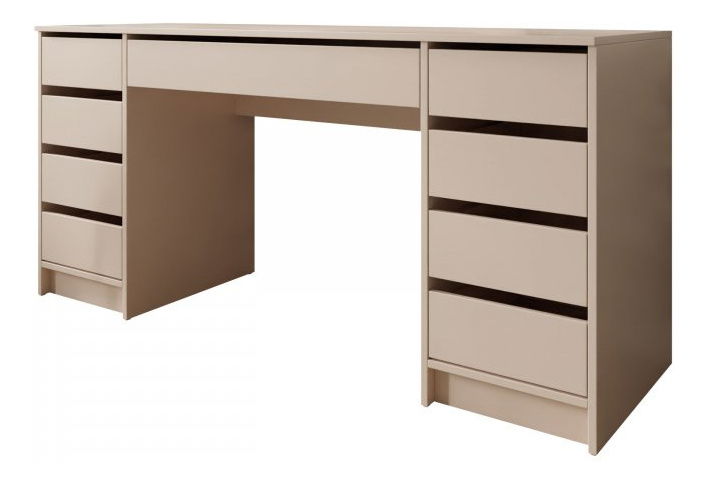 ZobrazitToaletní psací stůl je ideální volbou pro ty, kteří hledají pohodlí a styl. Toaletní psací stolek Heron Bis 2v1 je model, který splní všechna vaše očekávání! Tento univerzální kus nábytku bude ideální pro práci v domácí kanceláři nebo každodenní studium. Pomocí psacího stolu si můžete v ložnici vytvořit také kosmetický koutek. Množství prostorných zásuvek umístěných po obou stranách toaletního stolku pomáhá organizovat kosmetiku a doplňky, jakož i dokumenty a učební pomůcky. Moderní charakter psacího stolu se šuplíky zapadne téměř do každého aranžmá! Rozměry: šířka: 154 cm, výška: 76 cm, hloubka: 55 cm Provedení: 16 mm silná laminovaná deska, ABS a melaminová hrana, zadní stěna z HDF desky, kuličková vedení, žádné rukojeti, černé plastové nohy, zrcadlo s osvětlením viditelným na jedné z fotek