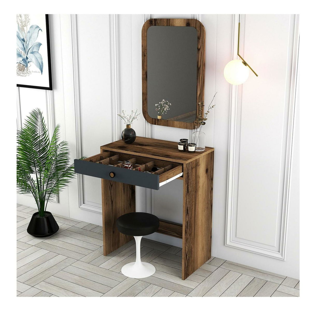 Toaletní stolek Logan 1 (antracit + ořech) (se zrcadlem)