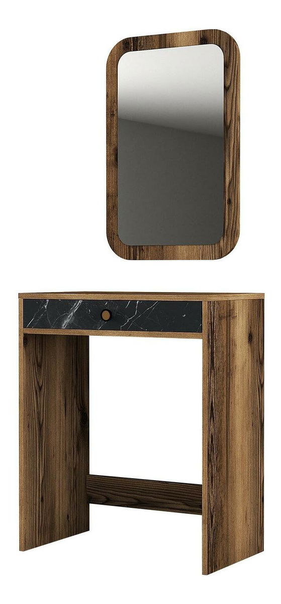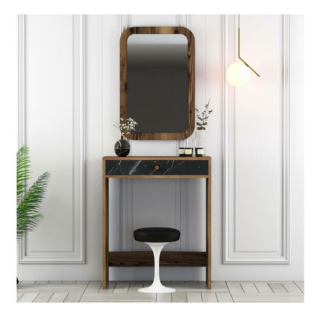 Toaletní stolek Logan 1 (černý mramor + ořech) (se zrcadlem)
