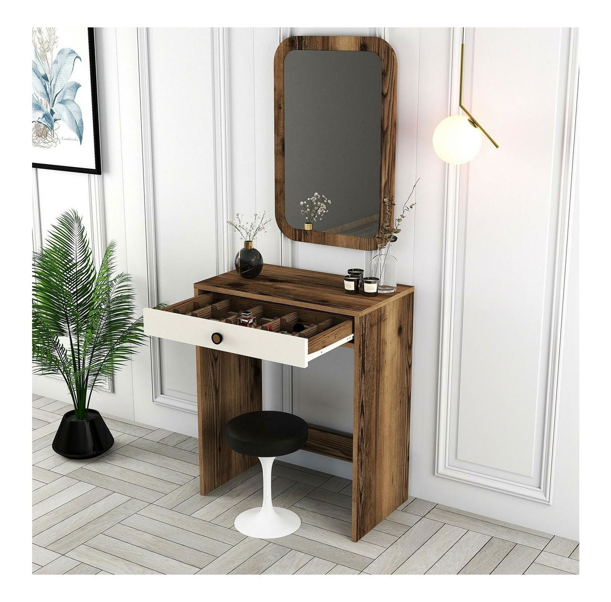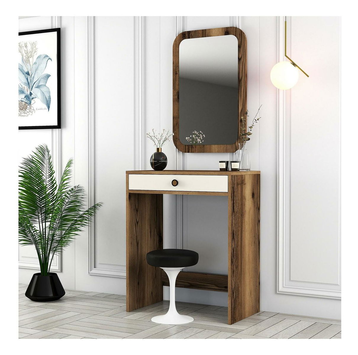 Toaletní stolek Logan 1 (krémová + ořech) (se zrcadlem)