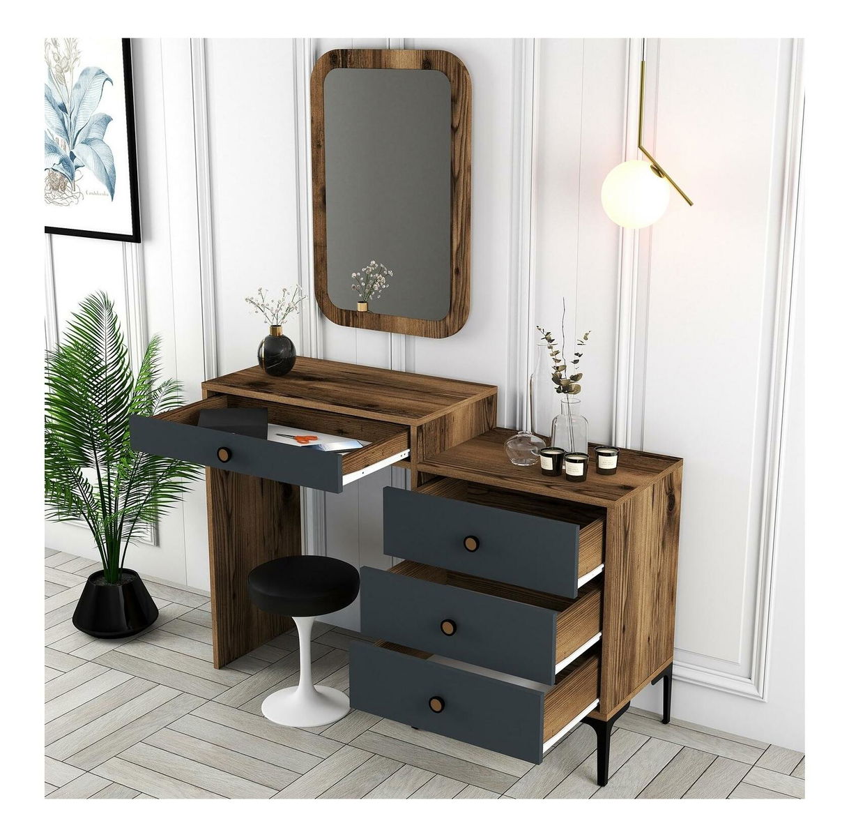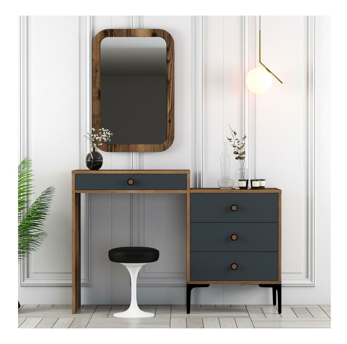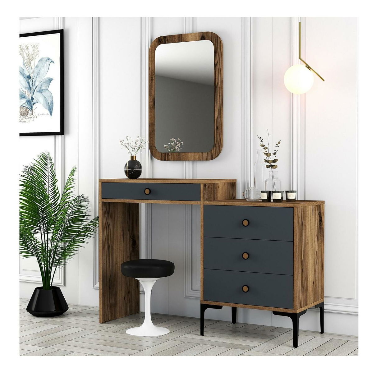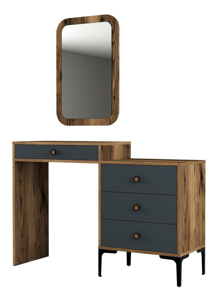 Toaletní stolek Logan 2 (antracit + ořechové dřevo) (se zrcadlem)