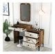 tloušťka: 18 mm, plastová rukojeť kovové nohy, komoda velikost: šířka: 124 cm, výška: 84,7 cm, hloubka: 40 cm, výška nohy: 17,8 cm, velikost zrcadla: šířka: 51 cm, výška: 76, 5 cm