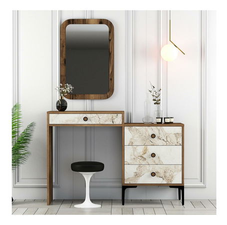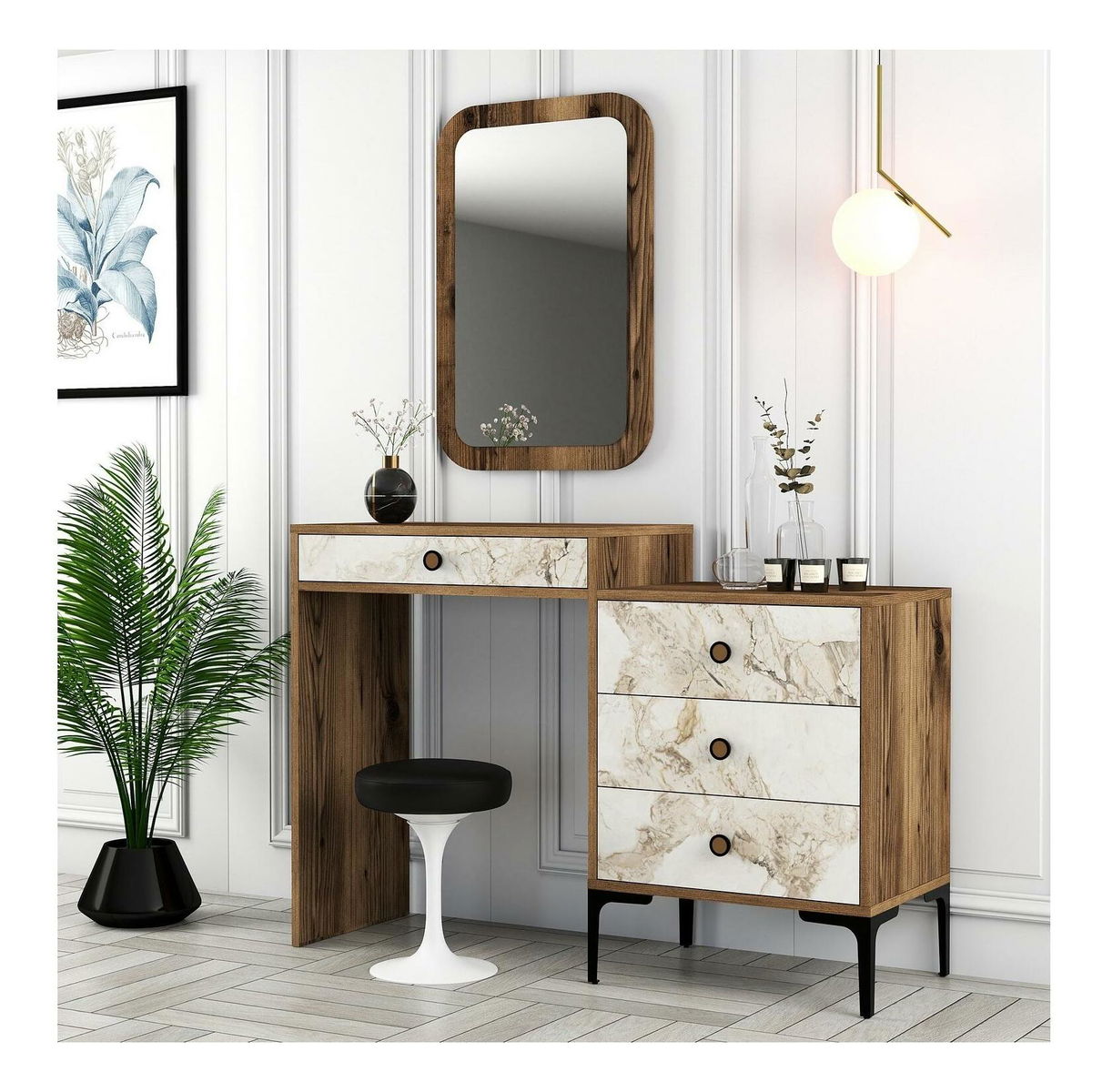 Toaletní stolek Logan 2 (bílá + ořech) (se zrcadlem)