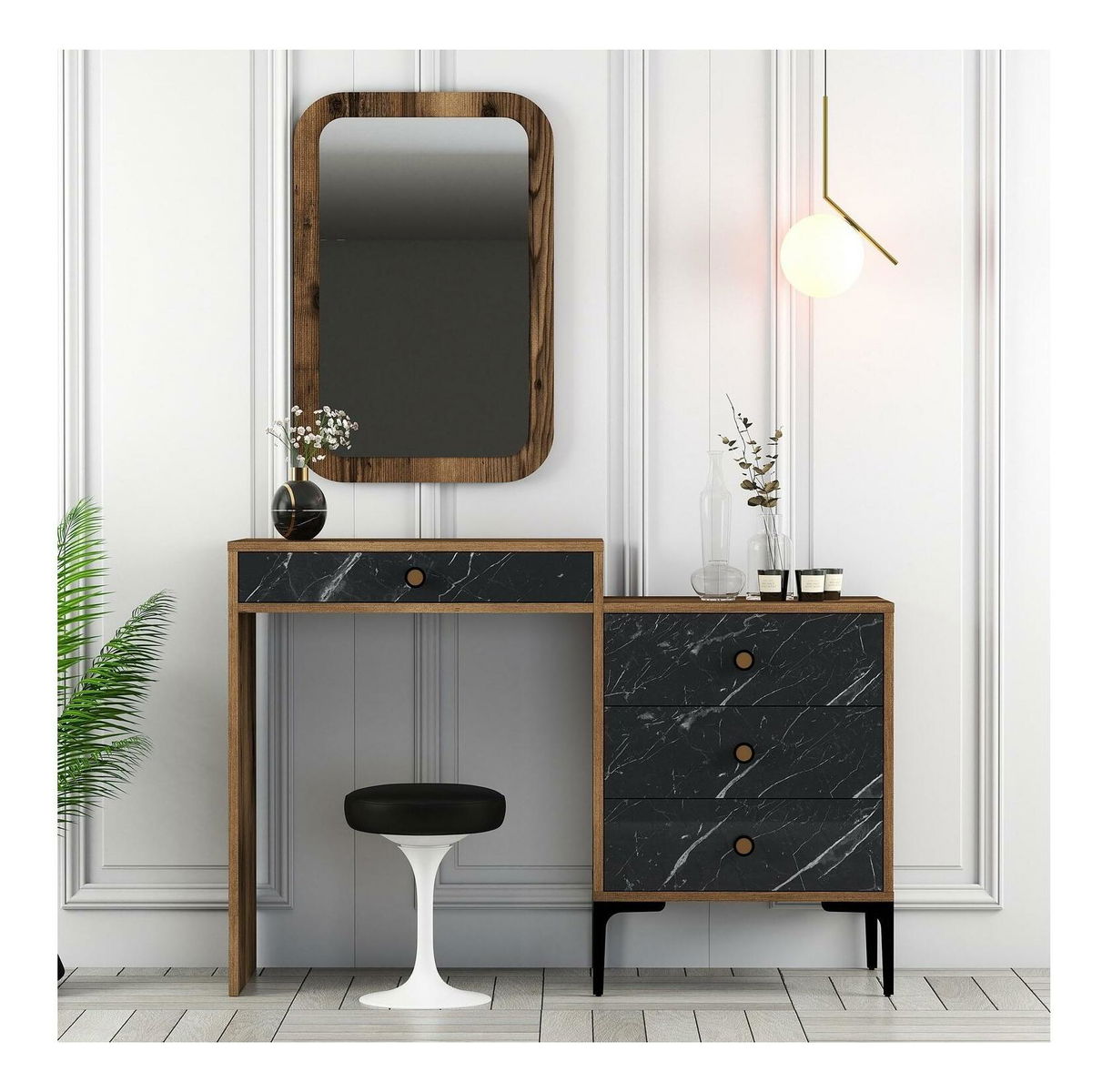 Toaletní stolek Logan 2 (ořechová + černá) (se zrcadlem)