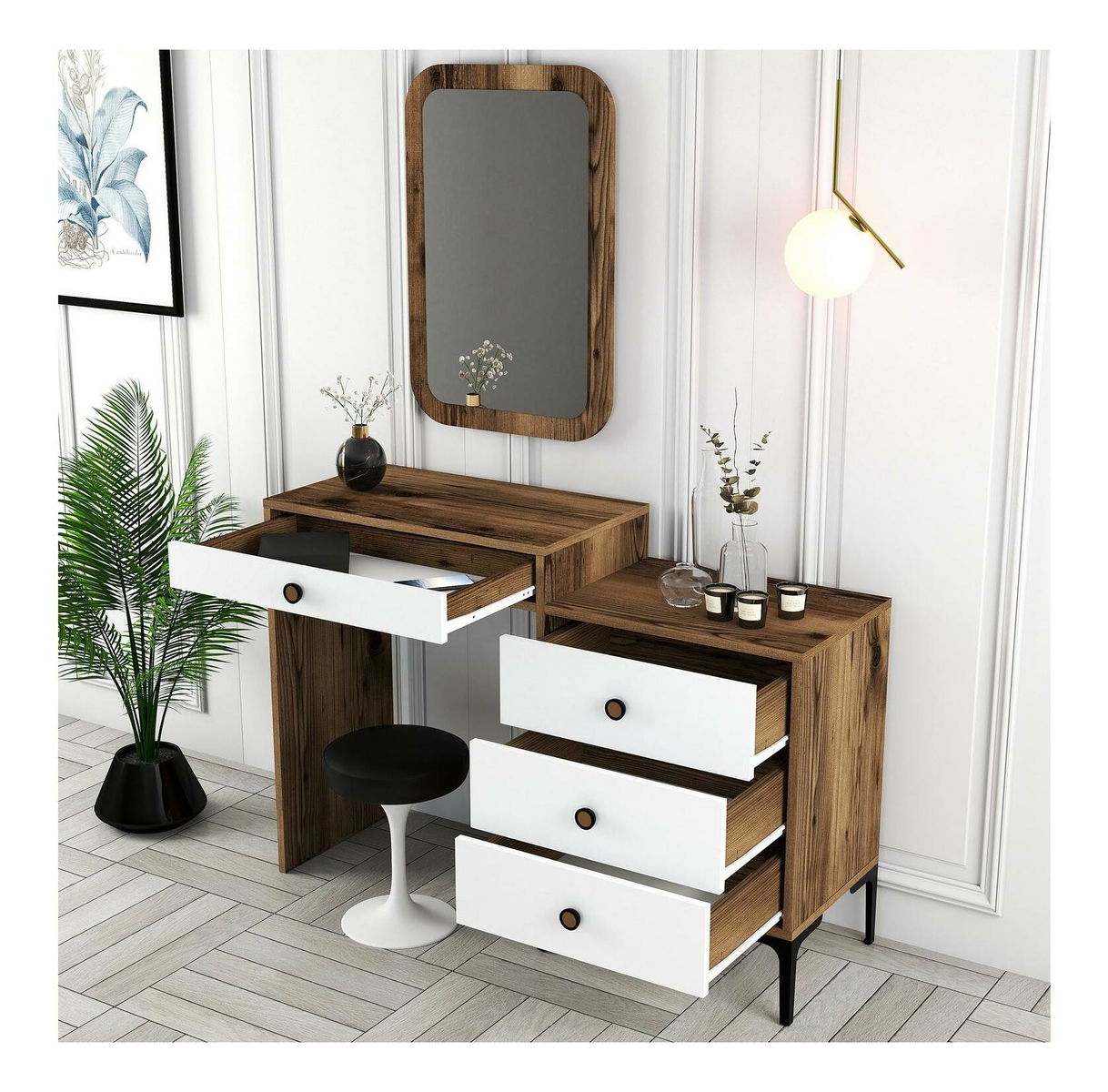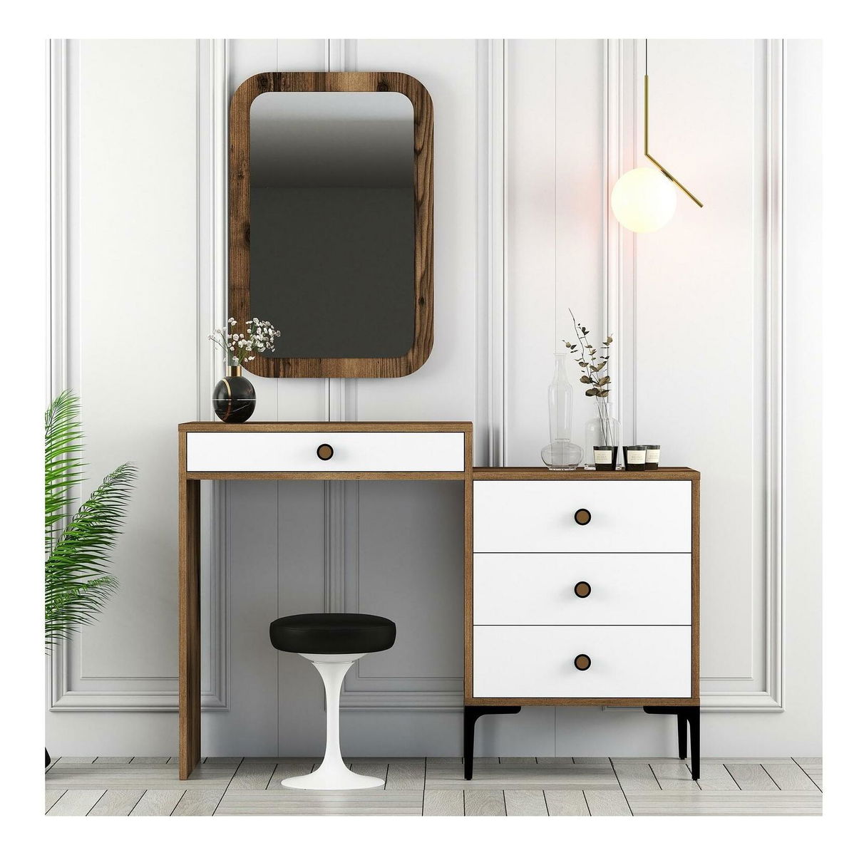 Toaletní stolek Logan 2 (ořechové dřevo + bílá) (se zrcadlem)