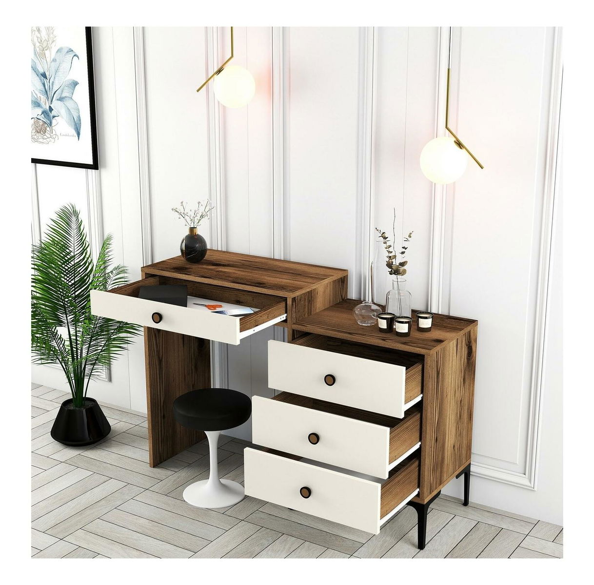 Toaletní stolek Logan 2 (ořechové dřevo + krémová)