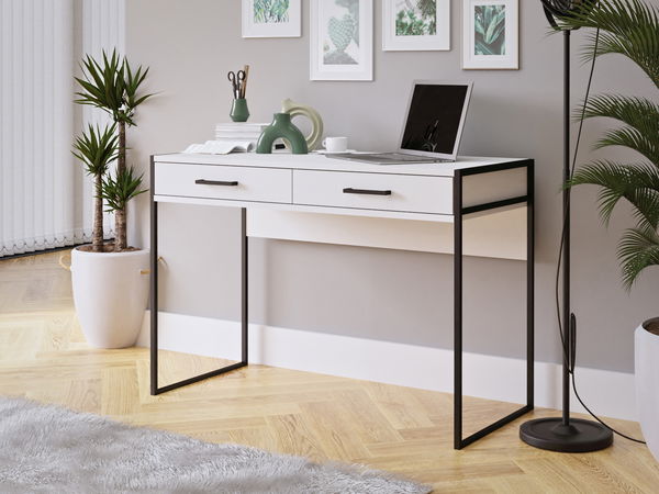 Designový minimalistický toaletní stolek Lotus spojuje moderní design geometrických tvarů s industriálními kovovými prvky. Oceníte čtyři úložný prostor v podobě dvou praktických šuplíků. Elegantní úchyty vyzdvihují celkový zvhled stolku.