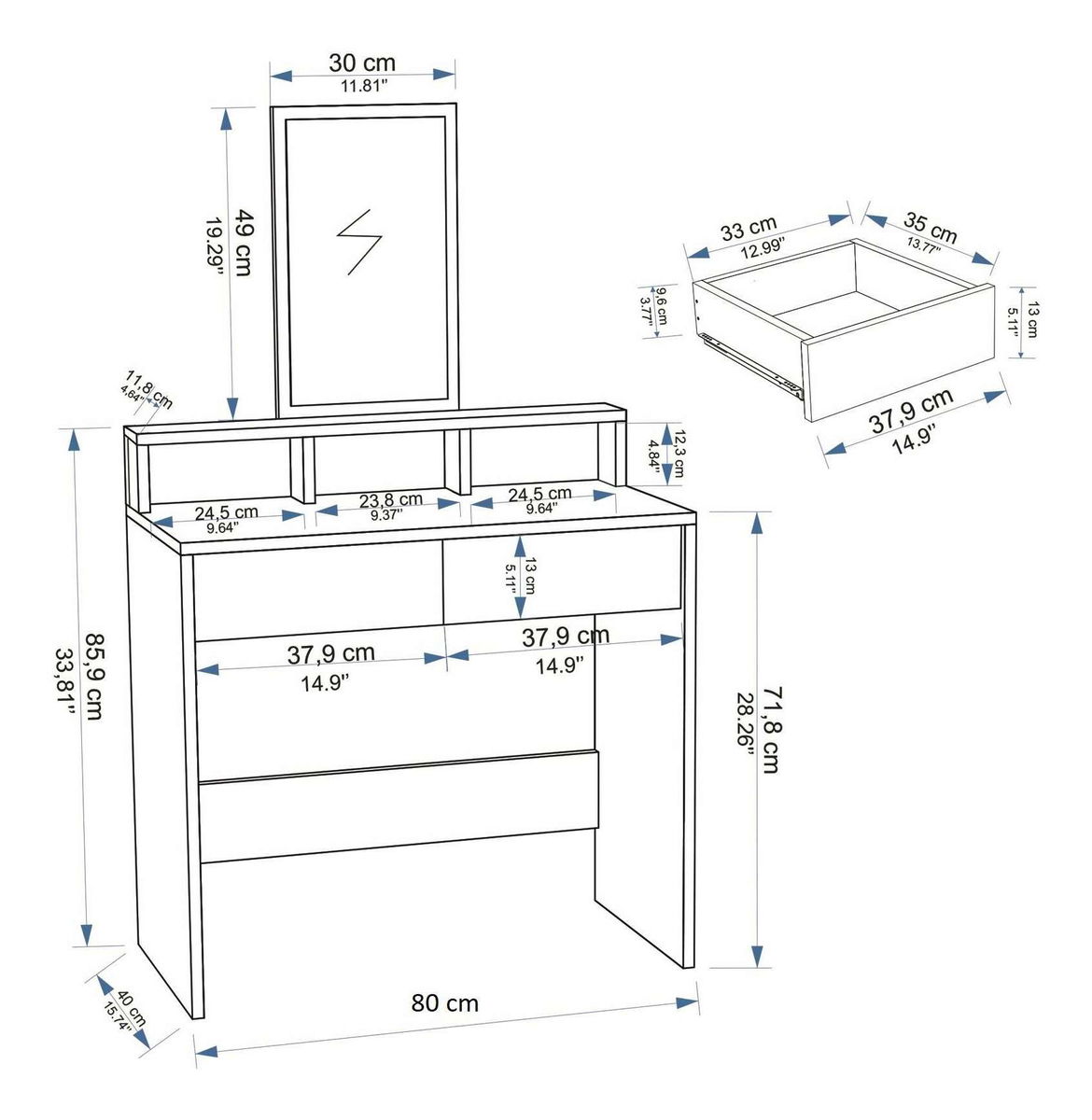 Toaletní stolek Lunara (bílá)