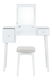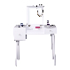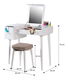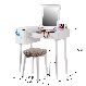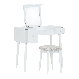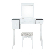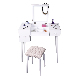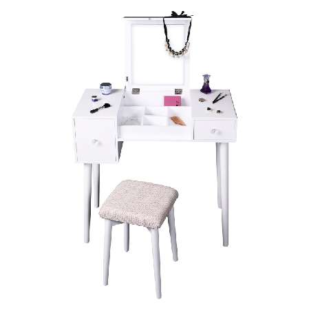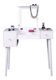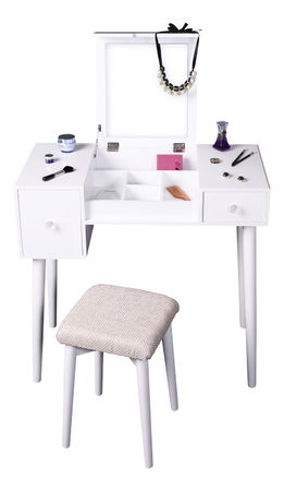 Elegantný toaletný stolík MARVEL vám dokáže, že každá žena je krásna. Vyrobený je z MDF a masívneho dreva v bielej farbe. Poskytuje úložný priestor v podobe dvoch šuplíkov. Jeden je menší a hlbší, druhý je väčší. Na vrchnej výklopnej doske nájdete z vnútornej strany zrkadlo, ktoré vám vyčarí úsmev na tvári. Šuplíky jednoducho otvoríte pomocou plastových úchytiek. Aby ste pri skrášľovaní nemuseli stáť, MARVEL prichádza spolu s taburetom, ktorý vám poskytne zaslúžený relax. Čalúnený je hnedou látkou.