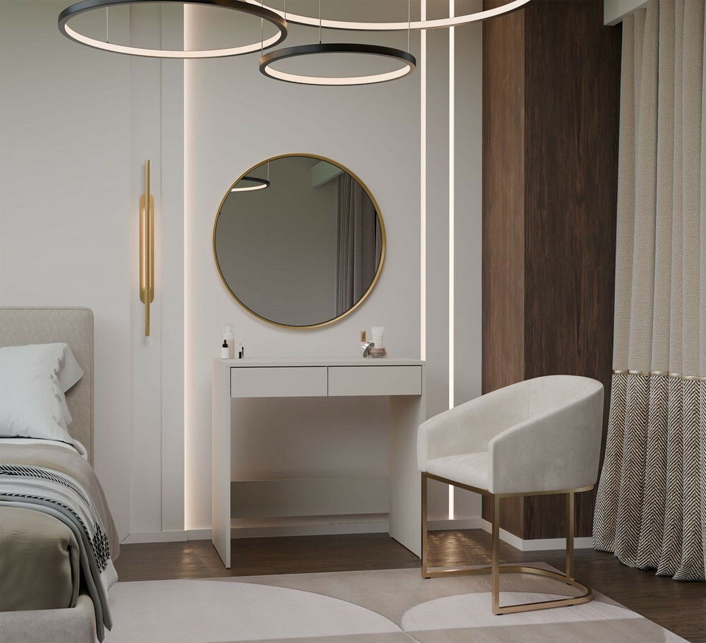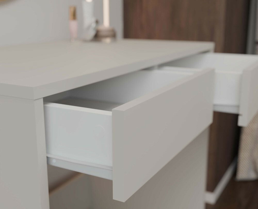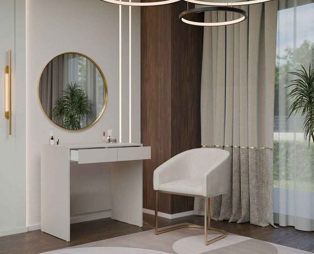 ZobrazitToaletní stolek Micras 1 v elegantním odstínu kašmíru je dokonalým spojením moderního designu a funkčnosti, který obohatí každý interiér. Se dvěma prostornými zásuvkami, které se plynule vysouvají, nabízí dostatek místa pro uskladnění kosmetiky a drobných předmětů. Minimalistický vzhled bezúchytkových front zajišťuje pohodlné používání a estetický dojem. Tento univerzální nábytek se hodí nejen do ložnice, ale také do pracovního prostoru či dětského pokoje, čímž vytváří harmonické a stylové prostředí.