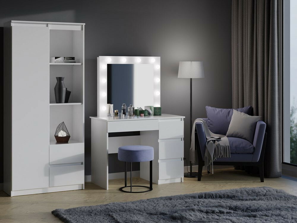 Toaletní stolek Micras 2 (bílá) (P) (se zrcadlem) (s LED osvětlením)