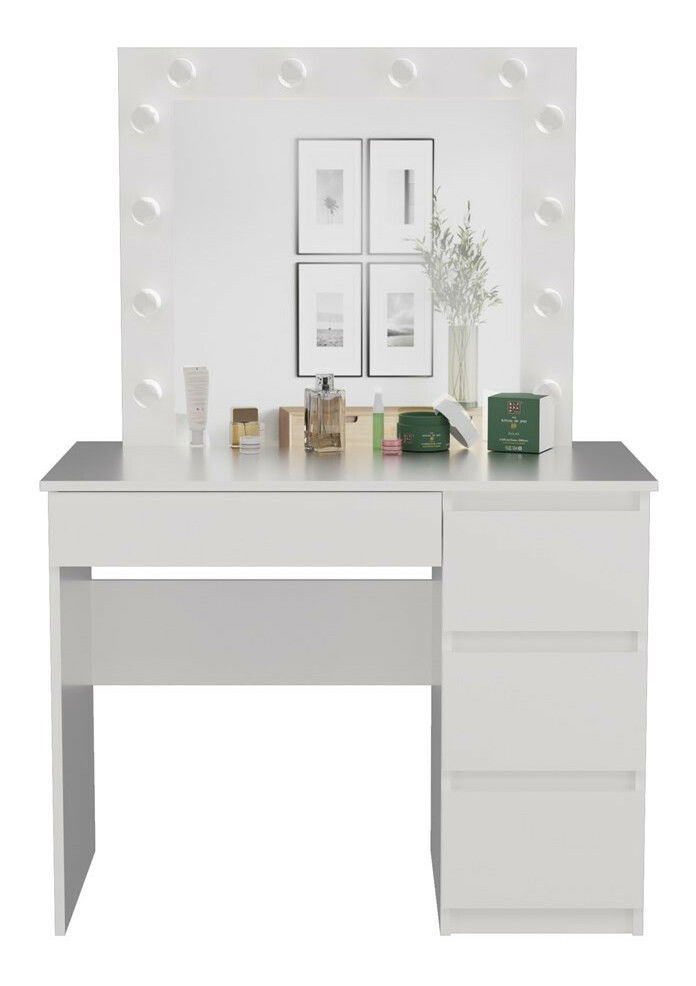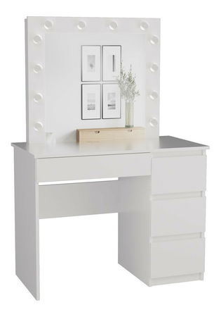 ZobrazitToaletní stolek Micras 2 v elegantní bílé barvě je dokonalým doplňkem pro každou moderní ložnici. Jeho promyšlená konstrukce nabízí čtyři praktické zásuvky, které zajišťují dostatek prostoru pro uskladnění kosmetiky a bižuterie. Osvětlení LED s integrovaným vypínačem poskytuje ideální podmínky pro líčení a péči o pleť. Bezúchytkové fronty zásuvek přispívají k minimalistickému vzhledu, zatímco kvalitní zpracování z laminované dřevotřísky zaručuje dlouhou životnost. Tento toaletní stolek je nejen funkční, ale také stylový, čímž obohatí vaše interiéry.