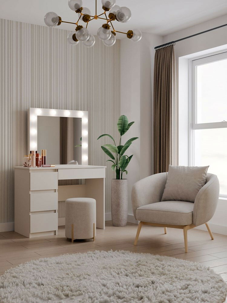 Toaletní stolek Micras 2 (kašmír) (L) (se zrcadlem) (s LED osvětlením)