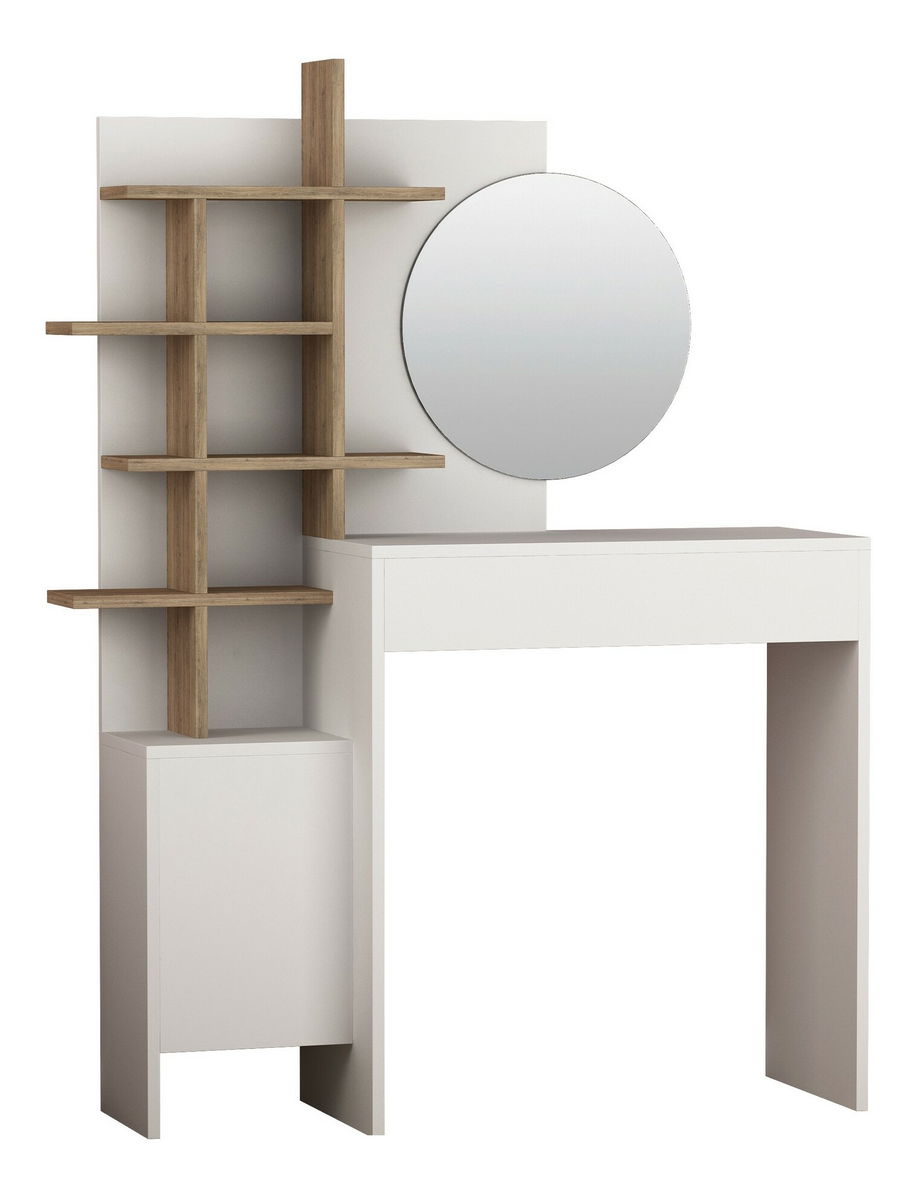 ZobrazitToaletní stolek - Molly (Bílá + Dub) je skvělým doplňkem pro vaši ložnici. S výškou 151 cm, šířkou 105 cm a hloubkou 35 cm nabízí dostatek prostoru pro vaše toaletní potřeby. Jeho bílo-dubová kombinace dodává stolku moderní a elegantní vzhled, který se snadno hodí k různým interiérům. Stolek je vyroben z kvalitního materiálu, což zaručuje jeho pevnost a odolnost. S více úložnými prostory, zrcadlem a pohodlným sedadlem, toaletní stolek Molly vám poskytne pohodlí a praktické řešení pro vaše denní rituály. Užijte si doteky luxusu a krásy s toaletním stolkem Molly.