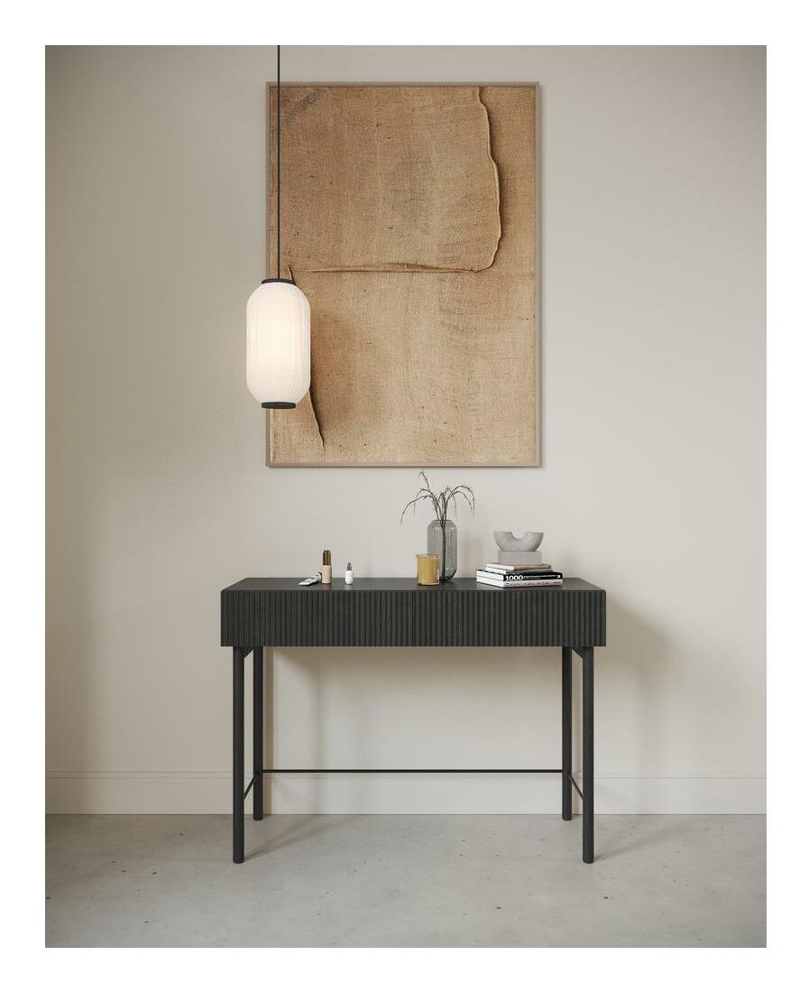 ZobrazitSníte o interiéru, ve kterém se snoubí minimalismus japonského designu s teplem skandinávského dřeva? Objevte kolekci a vneste do svého bytu klid, eleganci a funkčnost. Toaletní stolek je harmonickým spojením funkčnosti a estetiky v japonském stylu Nábytek je vyroben z odolné laminované desky a MDF desky s klasickými a šik černými předními stranami což dodává interiéru eleganci a příjemnou estetiku. Korpus je osazen na masivních dřevěných nohách spojených černou kvou příčkou, čímž je zdůrazněna elegance nábytku. Zásuvky byly navrženy s ohledem na funkčnost a vybaveny systémem push to open, který umožňuje snadné a bezproblémové otevírání. Díky vysokému rámu získává toaletní stolek lehkost a sofistikovanost při zachování funkčnosti. Prostorná pracovní deska bude ideálním místem pro vystavení vaší sbírky kosmetiky nebo šperků. Japandi styl je kombinací jednoduchosti a útulnosti a kolekce dokonale odráží tuto rovnováhu Detaily produktu: korpus vyrobený z laminované desky v barvě R34032 Portland Ash Black, tloušťka 16 mm, odolný vůči vlhkosti, teplotě a poškrábání, přední strany z frézovaného materiálu. MDF deska potažená fólií v barvě korpusu, na čelech použitý systém push to open usnadňuje plynulé otevírání a zavírání nábytku, dřevěné nožičky s kvou příčkou dodávají stabilitu a lehkost celé konstrukci, konstrukce vyztužená o Zásuvky s ABS hranou o tloušťce 0,5 mm mm kuličkových vodítkách zajišťují hladké a volné vysouvání.