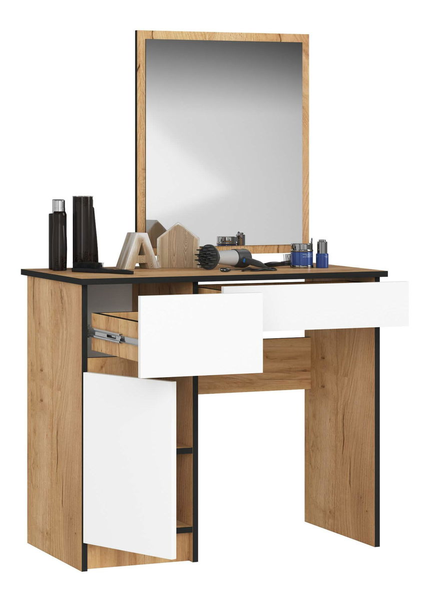 Toaletní stolek Parijat (dub craft + bílá) (se zrcadlem) (L)