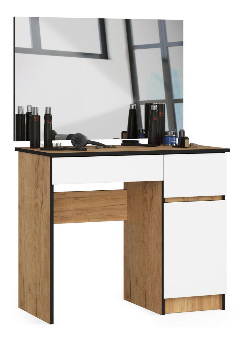 Toaletní stolek Parijat (dub craft + bílá) (se zrcadlem) (P)